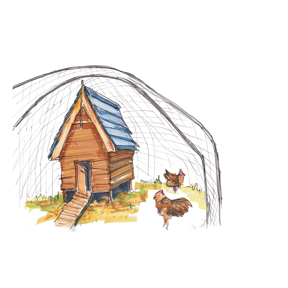 A cosy scene of chickens enjoying their home in the Lake District, UK.