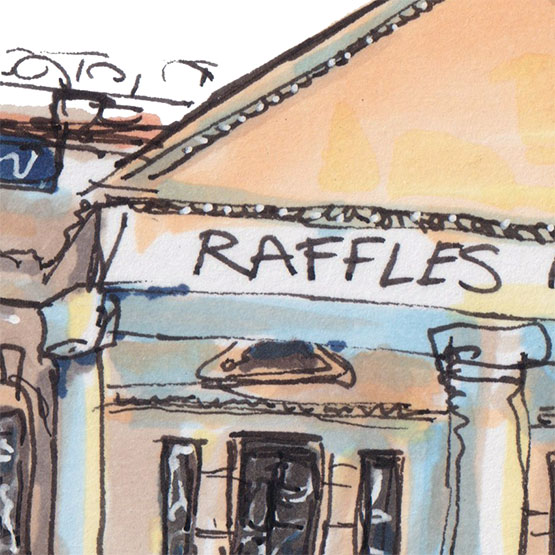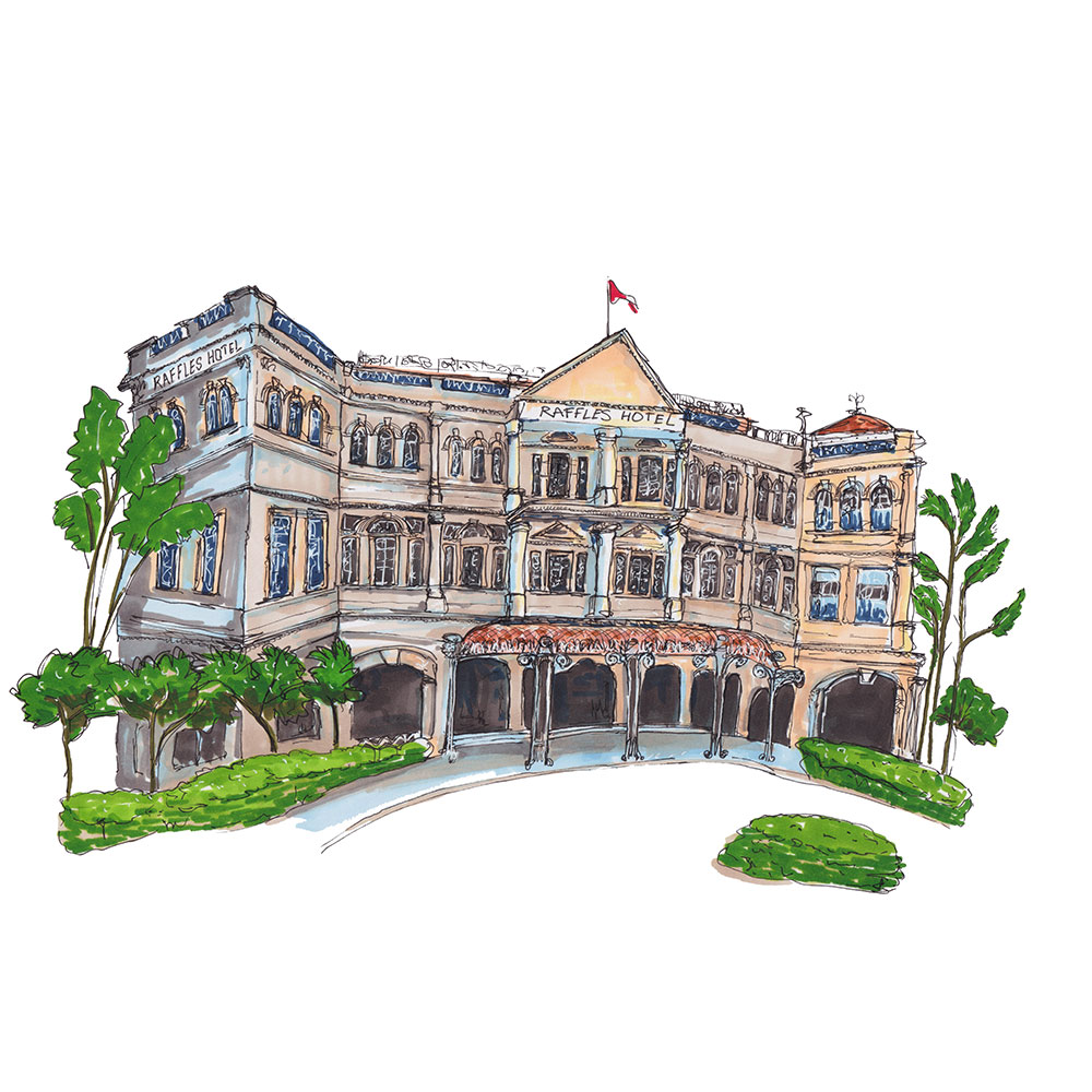 The iconic luxury hotel in Singapore, known for its colonial architecture, elegance and charm. When you arrive on foot, this is the view you’re met with.